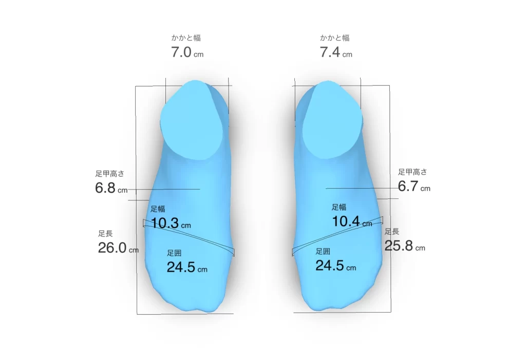 例:あなたの足長25.8cm → 私より -0.2cm。 - チャートで補正